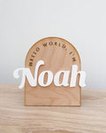 With our enchanting, 'Hello, world' birth announcment plaque.