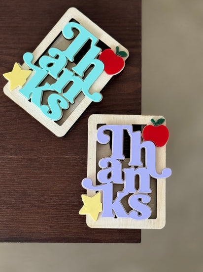 Its elegant design is beautifully accentuated by an acrylic "Thanks" message boldly adorning the front, creating a striking contrast that truly stands out.
